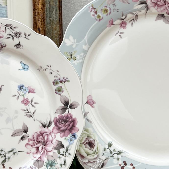 Romantičan dizajn s valovitim rubom - Svijetloplava podloga ukrašena ljubičastim božurima i finim cvjetnim motivima odiše gracioznošću i prozračnošću. Valoviti rub daje klasičan, vintage dojam koji očarava već na prvi pogled.