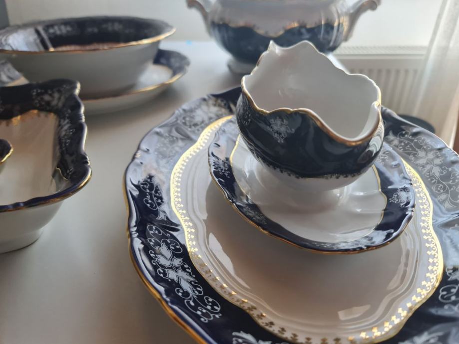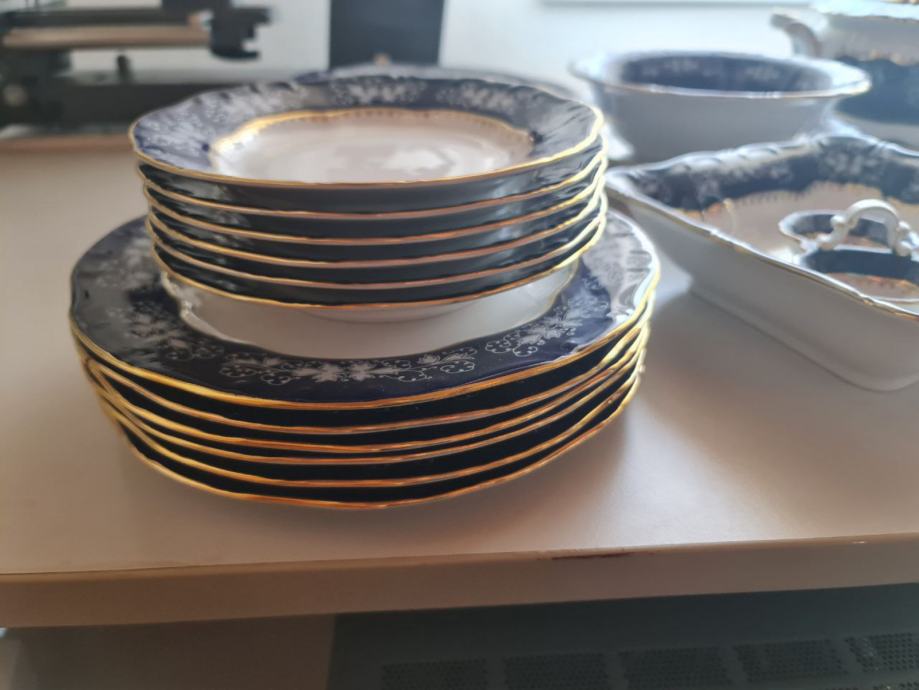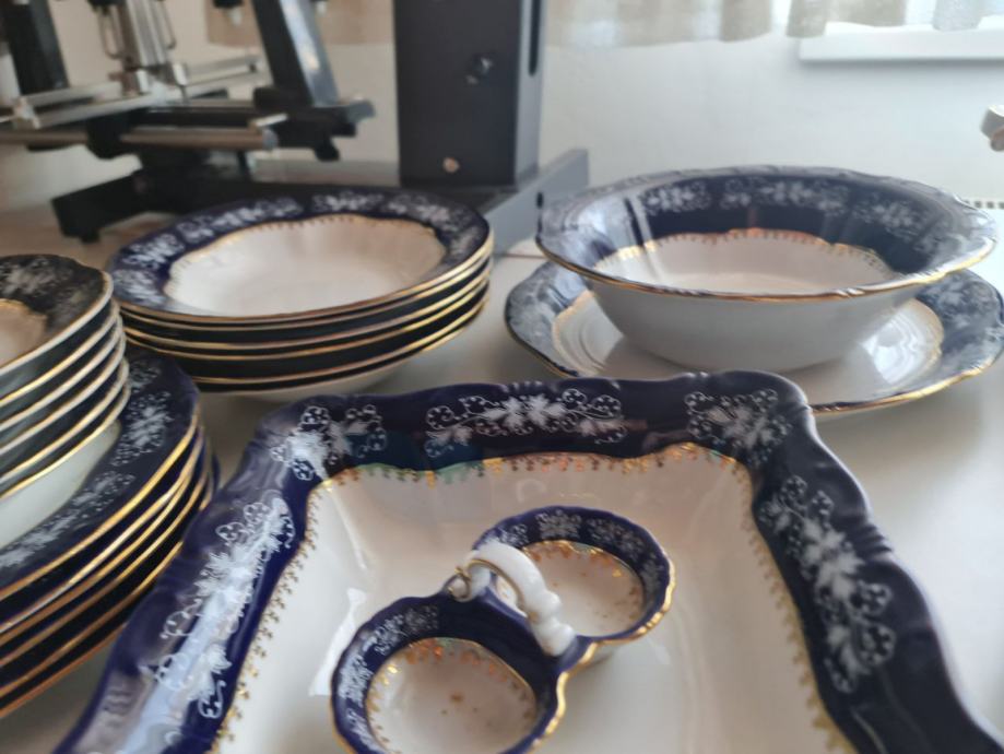 6 tanjura za desert, 6 tanjura za juhu, 6 tanjura za gl jelo, lonac za juhu, 2 zdjele za salatu, 2 tanjura za serviranje, 2 tanjura za umaci.