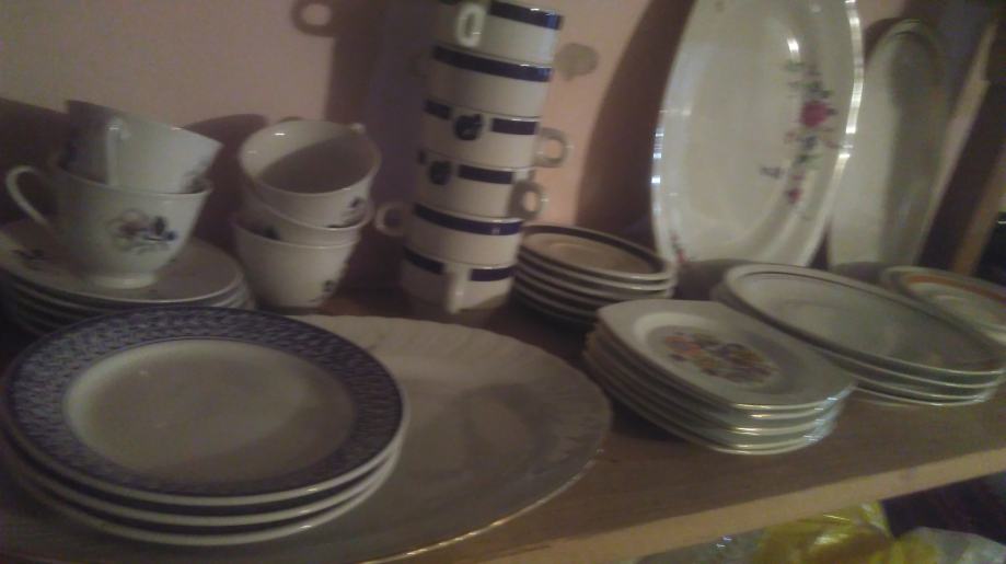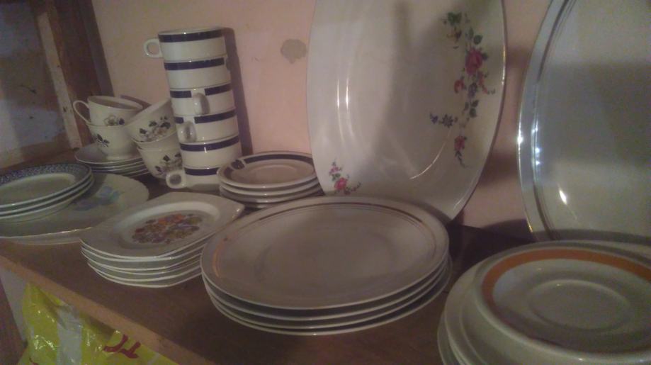Set starih tanjura i šalica i pladnjeva - ne korišteno