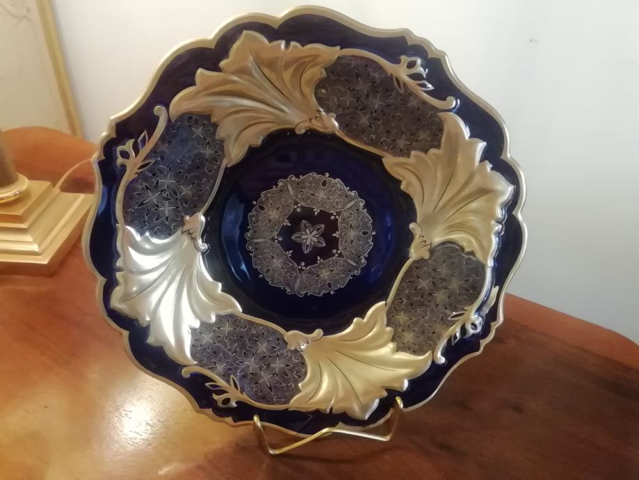 TANJIR, star, iz 60-ih godina, dubok, kobalt, sa pravom pozlatom, odlicno sacuvan, Weimar, Njemacka ,vrlo lijep, premer 32cm,cijena:140 eur. Tel. 00386/70 271 607,Ljubljana.