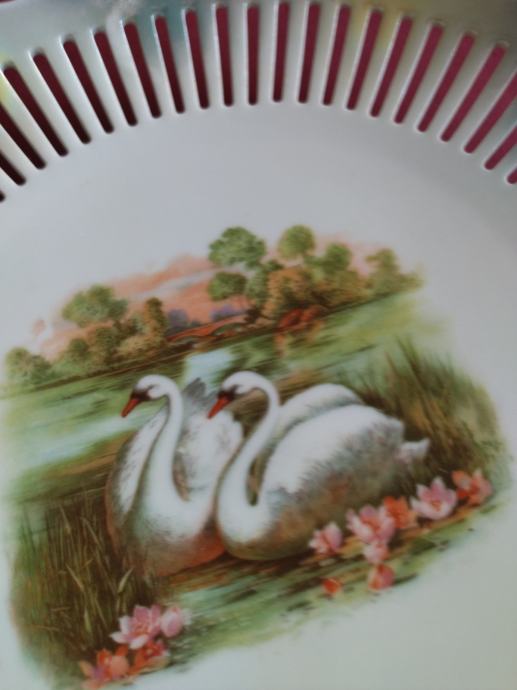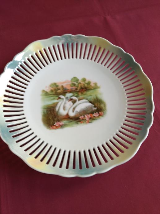 Poseban porculanski tanjur promjera 24,5 cm oslikan lijepim motivom sa dva labuda.