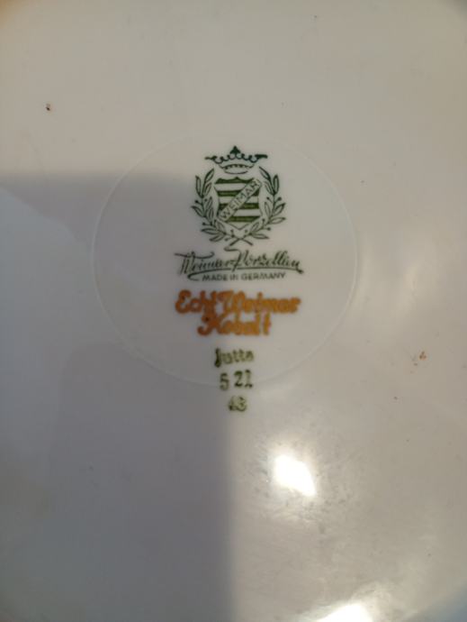 Porculanski tanjur od kobalta,Echt Weimar sa pozlatom.