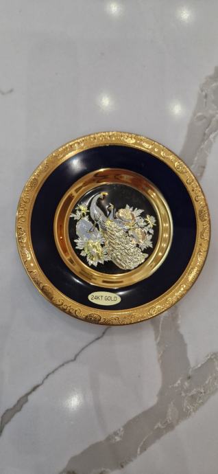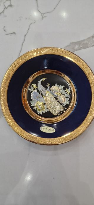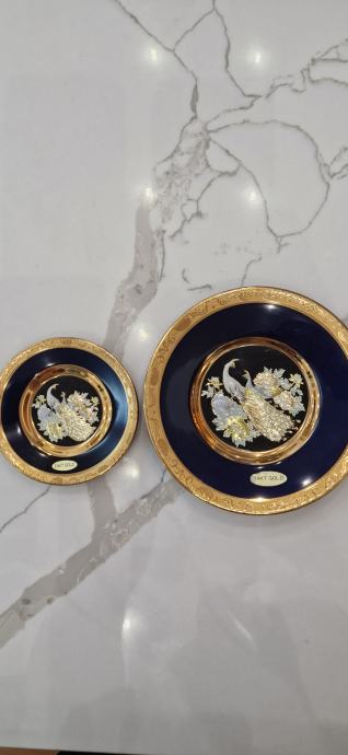 Prekrasni ukrasni tanjuriči.Dva komada u kompletu.Kobaltno plava boja sa pozlatom.Promjer većeg 15,3 cm ,manji 10,3 cm.Savršeno stanje.