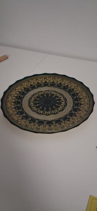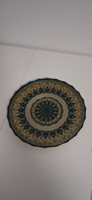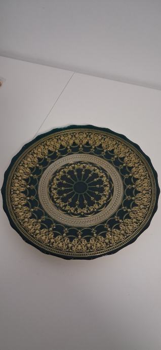 Širina 33,5cm.Boja tamno maslinasta sa zlatnim ukrasima.