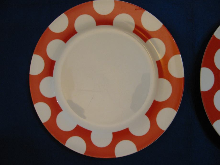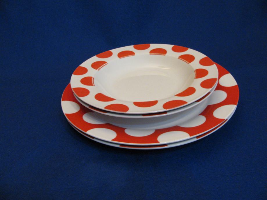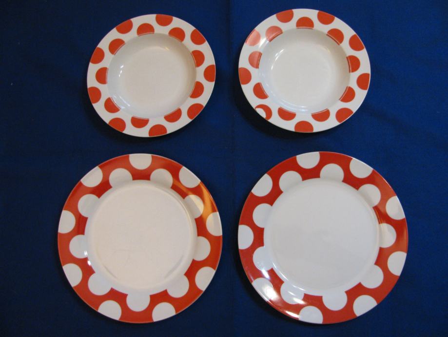 Tanjuri H&H-LIFESTILE. Crveni rub-bjele kugle. Porculan. 2+2 kom. SAND