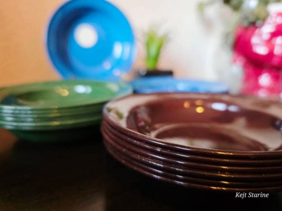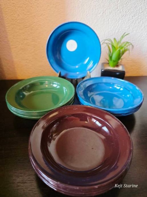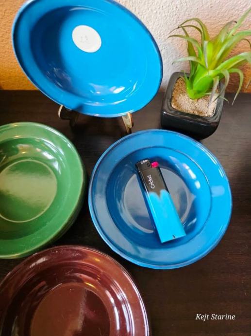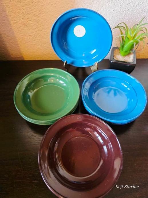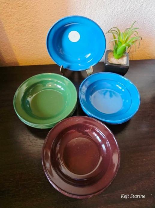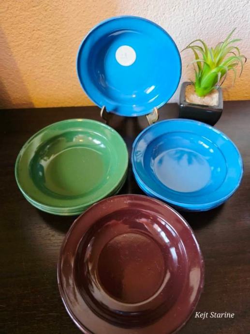 Setovi malih emajliranih tanjura.