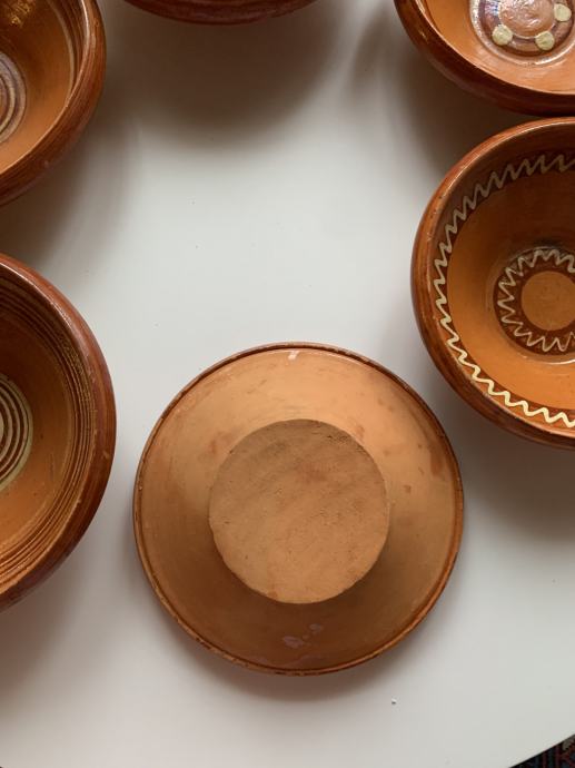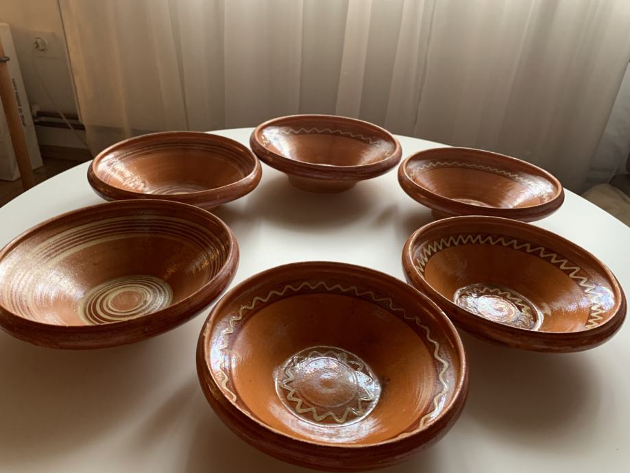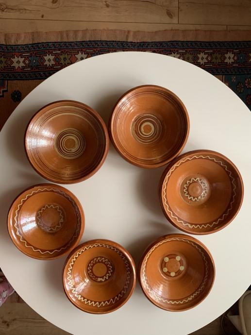 Set (6 kom) tanjura hrvatskog Prigorja od pecene gline glazirani.