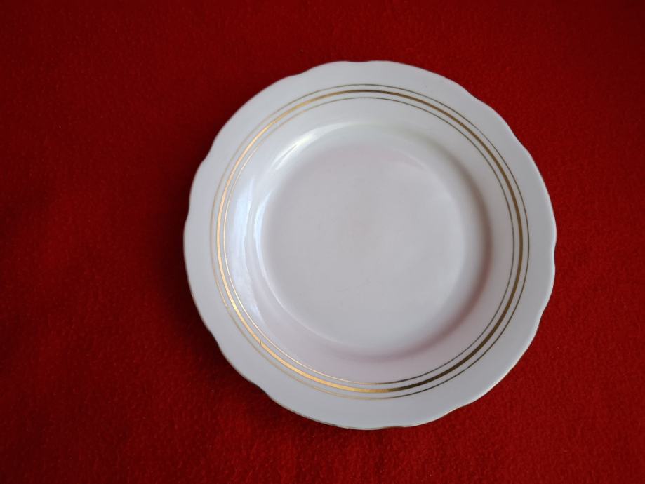 Tanjurić sa zlatnim rubom i unutar crtama, rub blago izlizan.