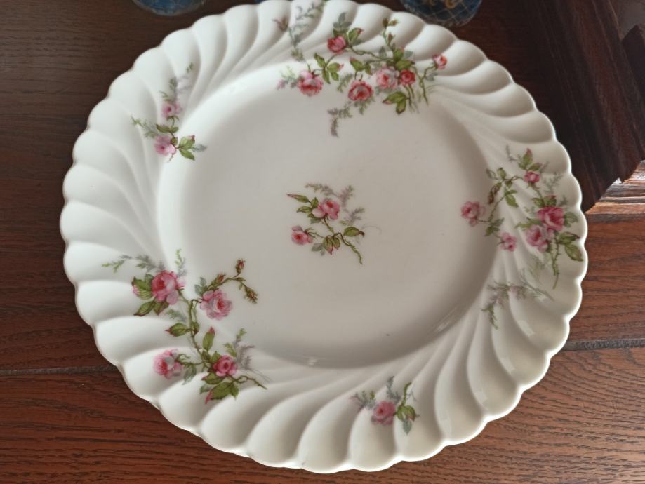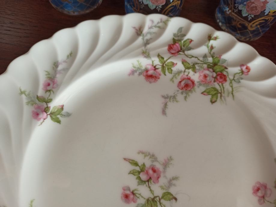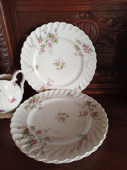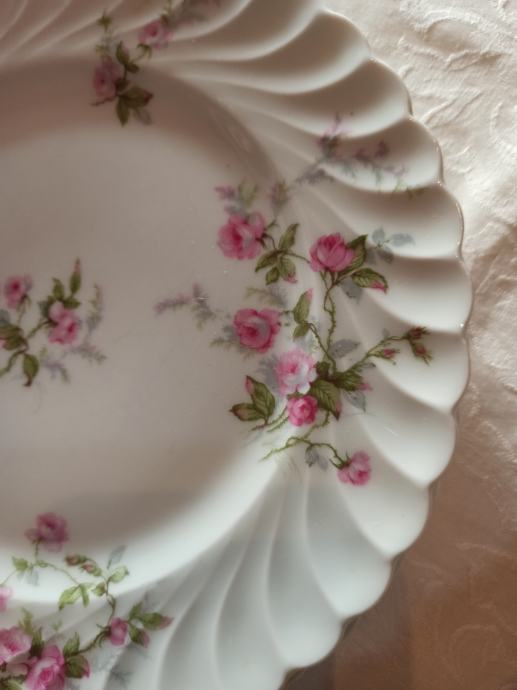 Tri plitka tanjura Limoges s motivom malih ružica.