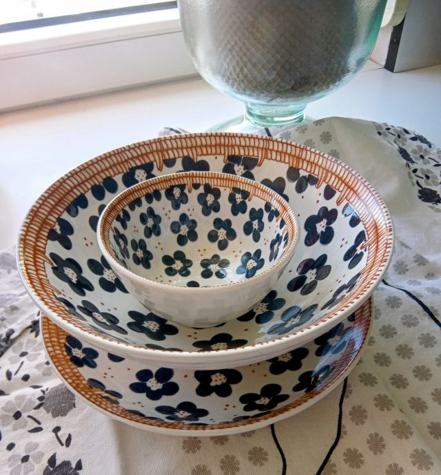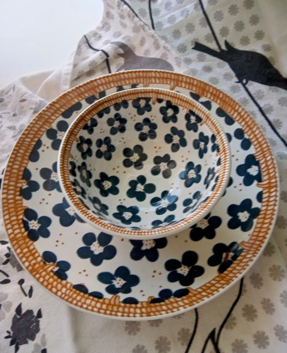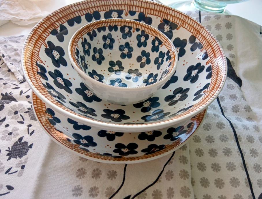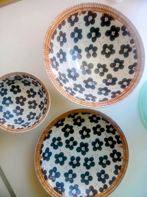 Ukrasni set od plitki tanjur sa lijepim dizajnom može za kolače velika ukrasna zdjela za voće ili salate jedna mala za grickalice ili umake