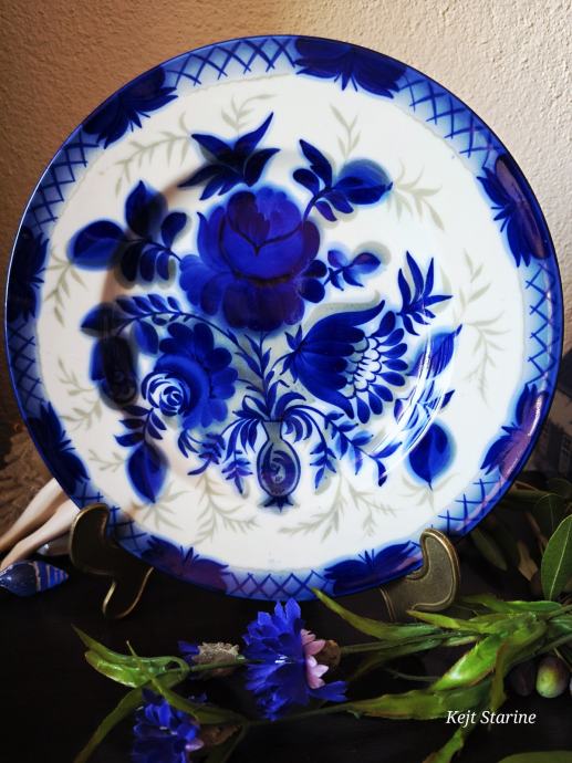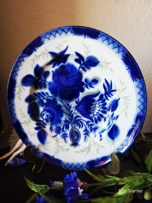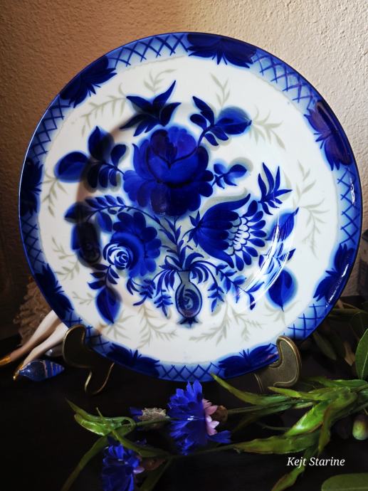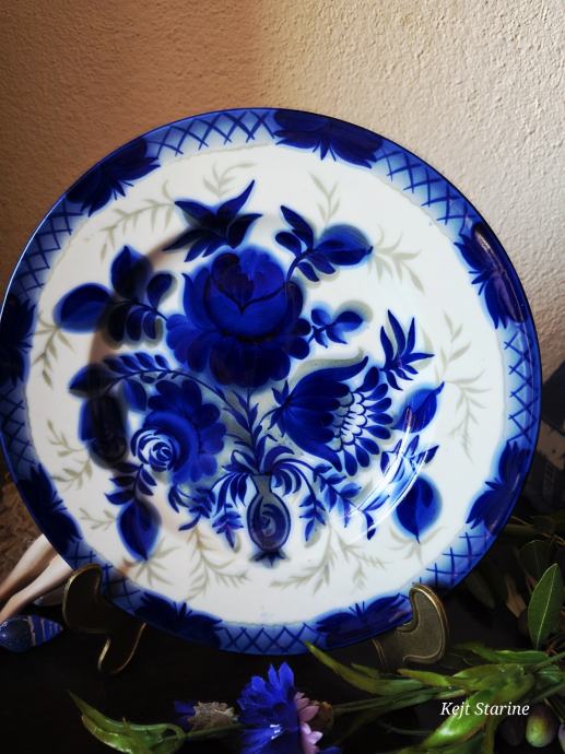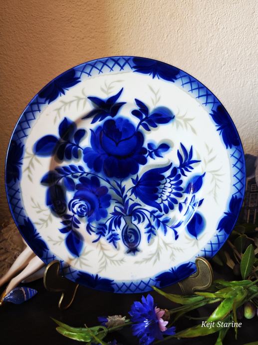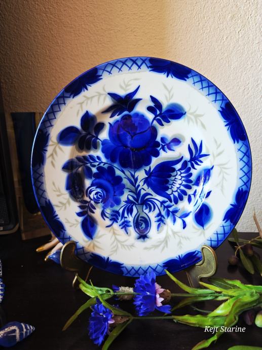 Lomonosov, ručno oslikan zidni kobaltni tanjur iz 60-ih godina prošlog stoljeća. U savršenom stanju.