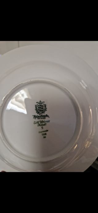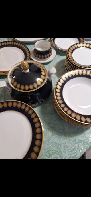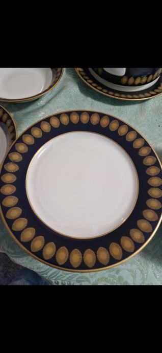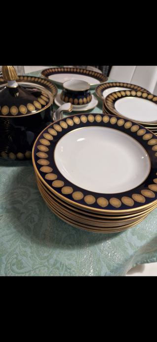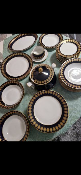 12 plitkih, dubokih i desertnih tanjura, zdjela za juhu, sos i ovalni pladnjevi. Ništa okrhnito i sve u perfektnom stanju te se ne koristi.