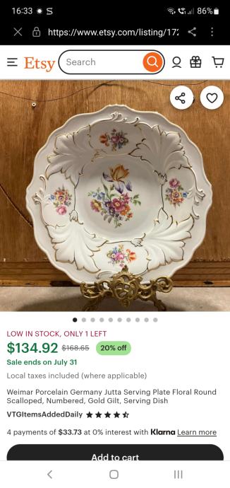 Krasan kolekcionarski servirni veliki porculanski njemački tanju brendirane firme Weimar