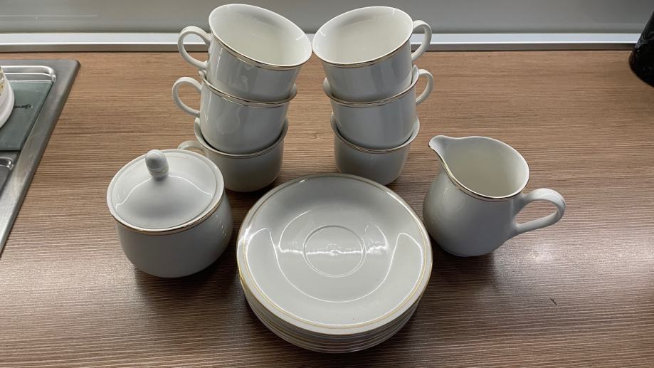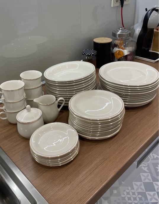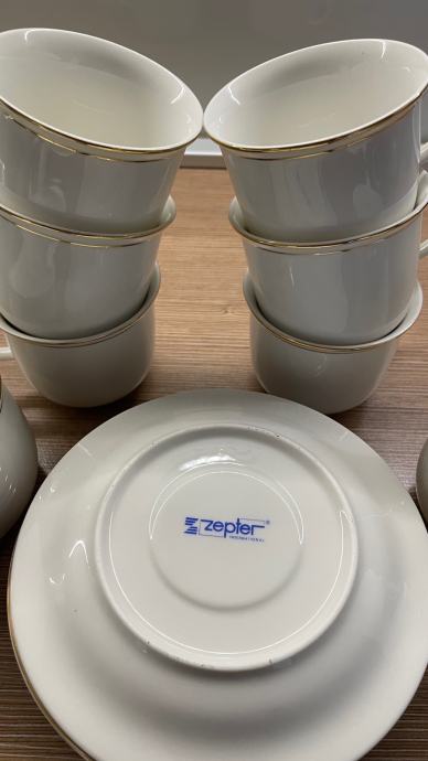 ZEPTER porculan set sa rubnom pozlatom za 12 osoba + 6 šalica i tanjurića za kavu sa dozom za šećer i mlijeko!