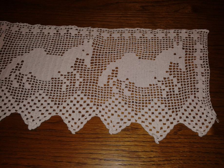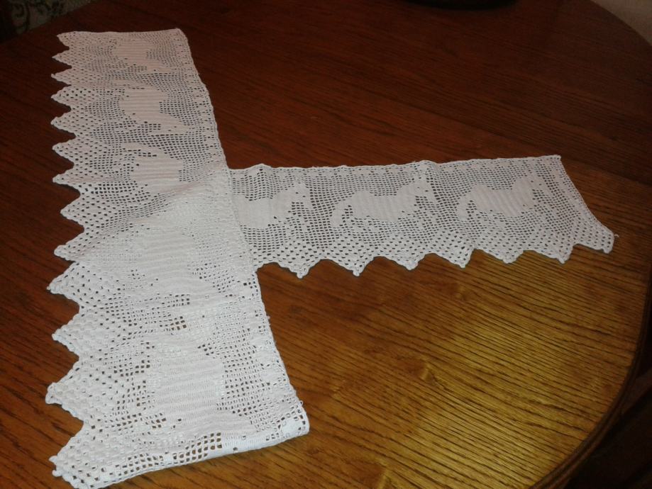 čipka dužine 170 širine 20 cm baka naheklala ,vjerovatno i šira i duža kad se raspegla tko zna,ja sam izmjerila u opranom stanju,bez glačanja,da nešto ne uprskam, cijena je fiksna, KONTAKT ISKLJUČIVO NA POZIV , slanje po dogovoru na teret kupca,Pouzećem nešaljem