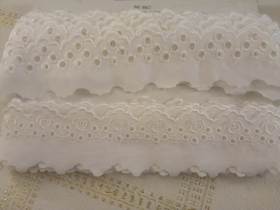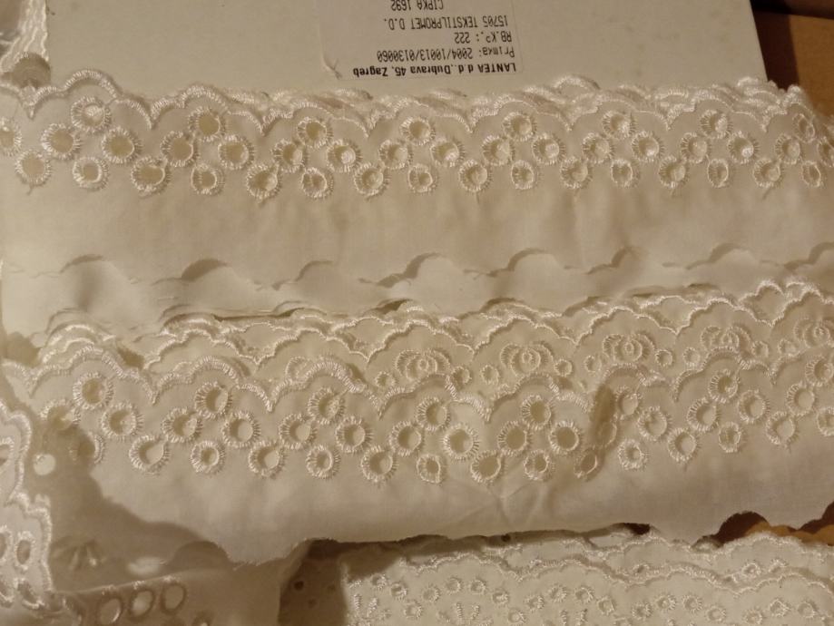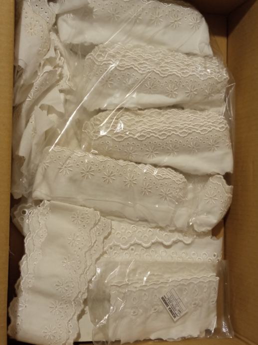 Čipka, 3 razlicita uzorka, ostatak od proizvodnje, posve novo, sirina 6 cm, pamuk