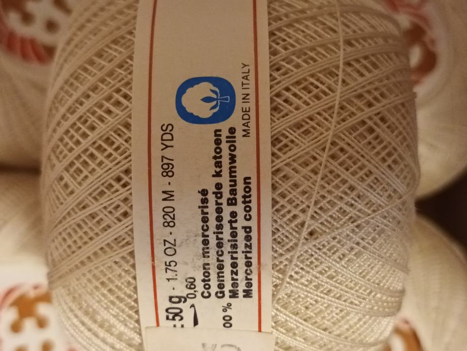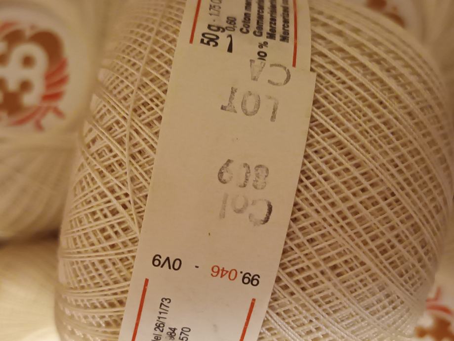 Konac, 100% mercerizirani pamuk, klupko 50 gr., tanak ,br.80 , otprilike kao Unitasov Ljiljan 70, kukica 0,60