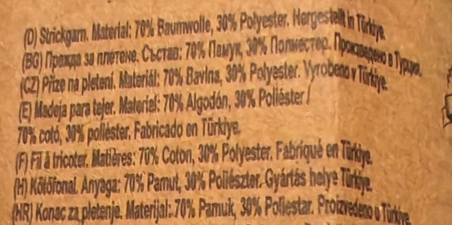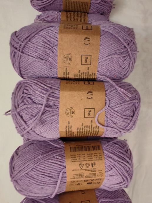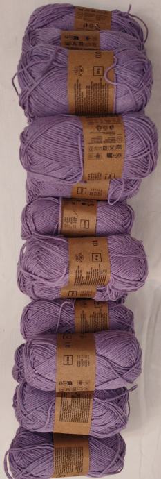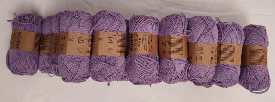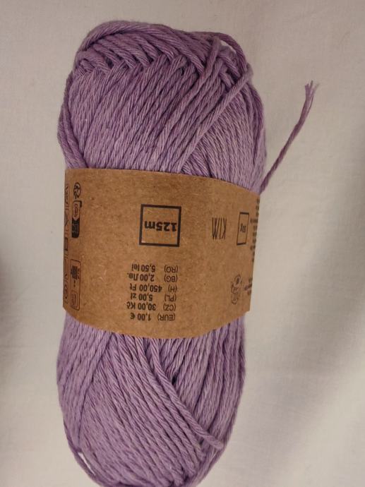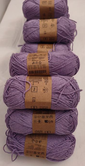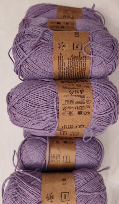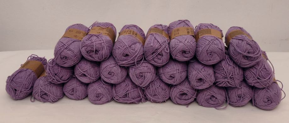 Novi konac za heklanje ili štrikanje, sastava 70%pamuku,30%poliester.Jedan komad ima 50g i duljinu 125 m. Radi se iglama 2 - 3.Cijena po komadu 1€.Ima 25 komada.
