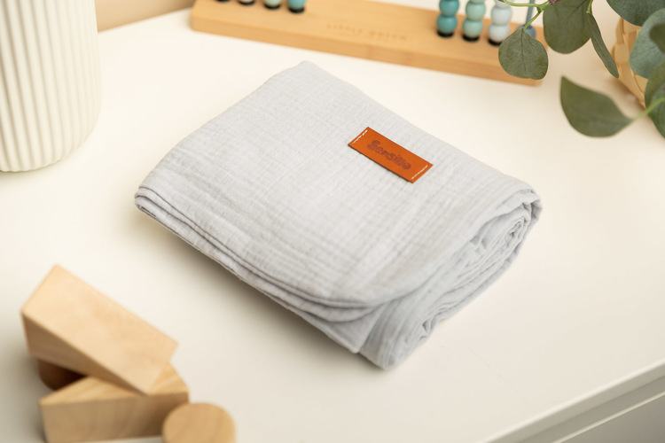 Pokrivač od muslina izrađen je od visokokvalitetne 100% pamučne tkanine. Izrađen je od dva sloja pamuka, što ga čini laganim i prozračnim. Dobro će poslužiti u šetnjama za toplih sunčanih dana, može poslužiti kao deblje povijanje, za svakodnevnu igru ili kao navlaka tijekom hranjenja. Nježni pamuk osigurava pravilnu cirkulaciju zraka, a također ne senzibilizira niti iritira bebinu kožu. Dodatna prednost deke je prekrasna tekstura tkanine.
