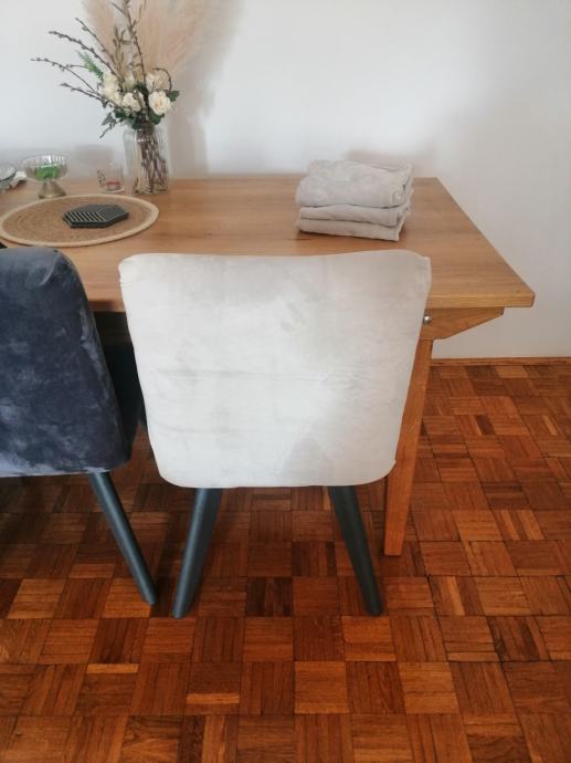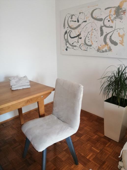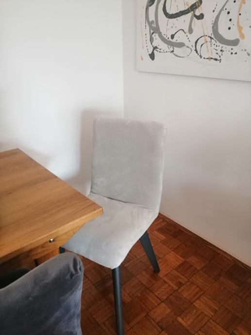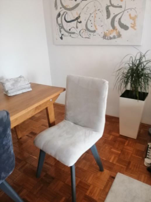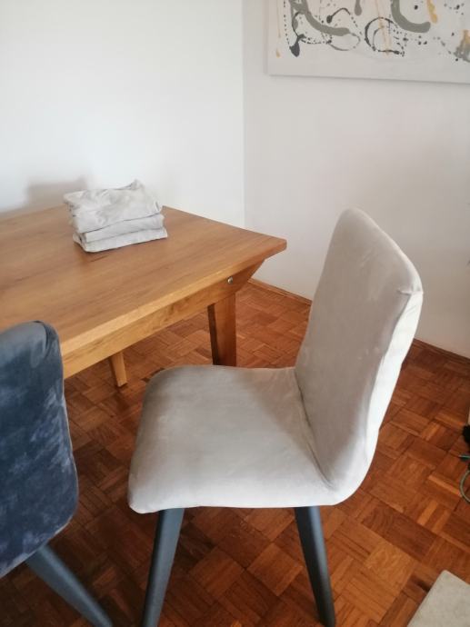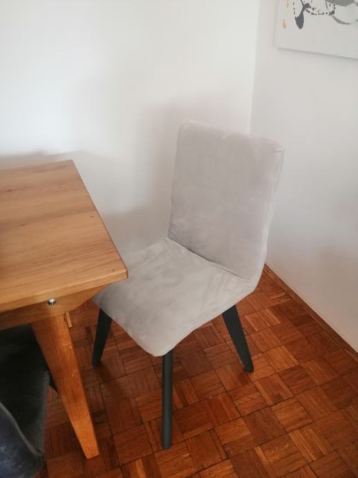 Prodajem 4 nove kvalitetne navlake za stolce. Boja je moderna svijetlo siva, materijal je rastezljivi te se lako oblikuju prema stolici.Cijena je za 4 kom.