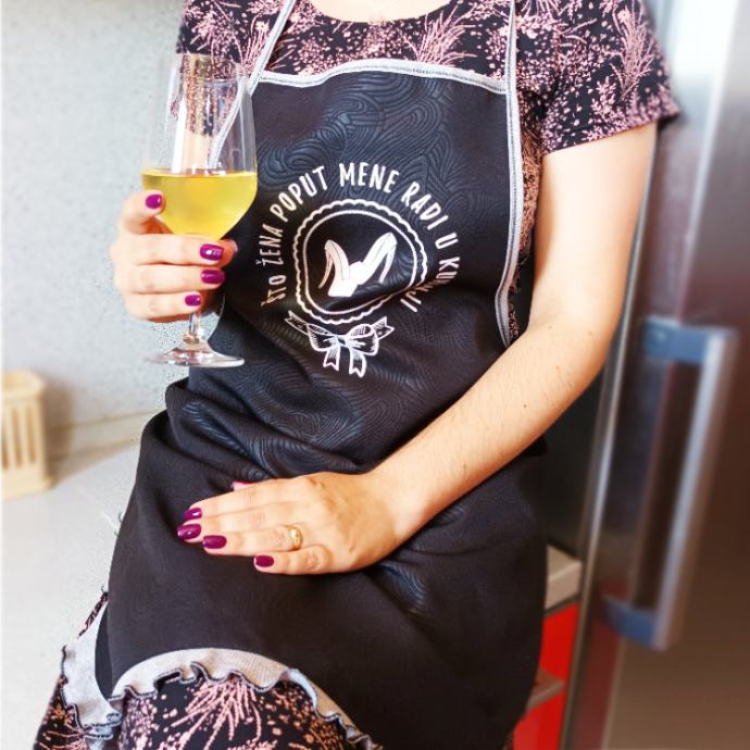 Ženska pregača s šaljivim natpisom.