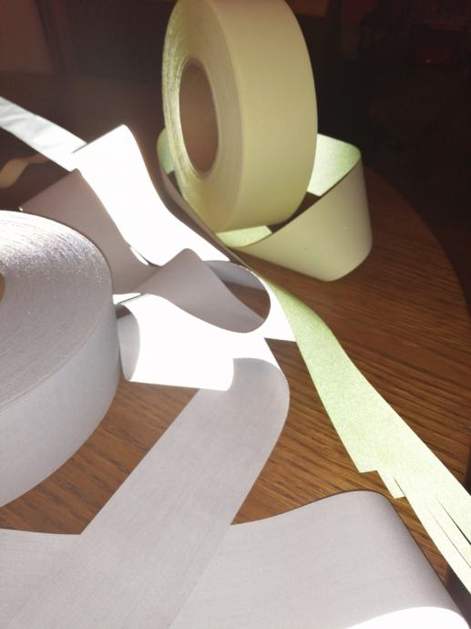 Žuta traka nije reflektirajuća već jako vidljiva, isto na tkanini, širine 50mm