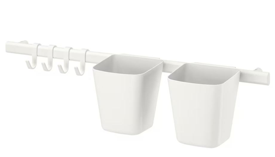 Nova ikea sipka za kuhinju sa kukicama,posudama za pohranu i biljkom,lako se montira