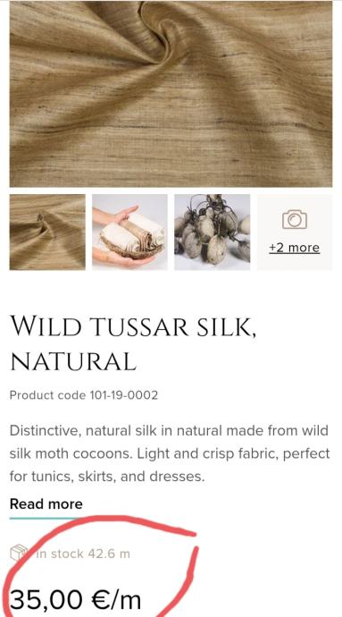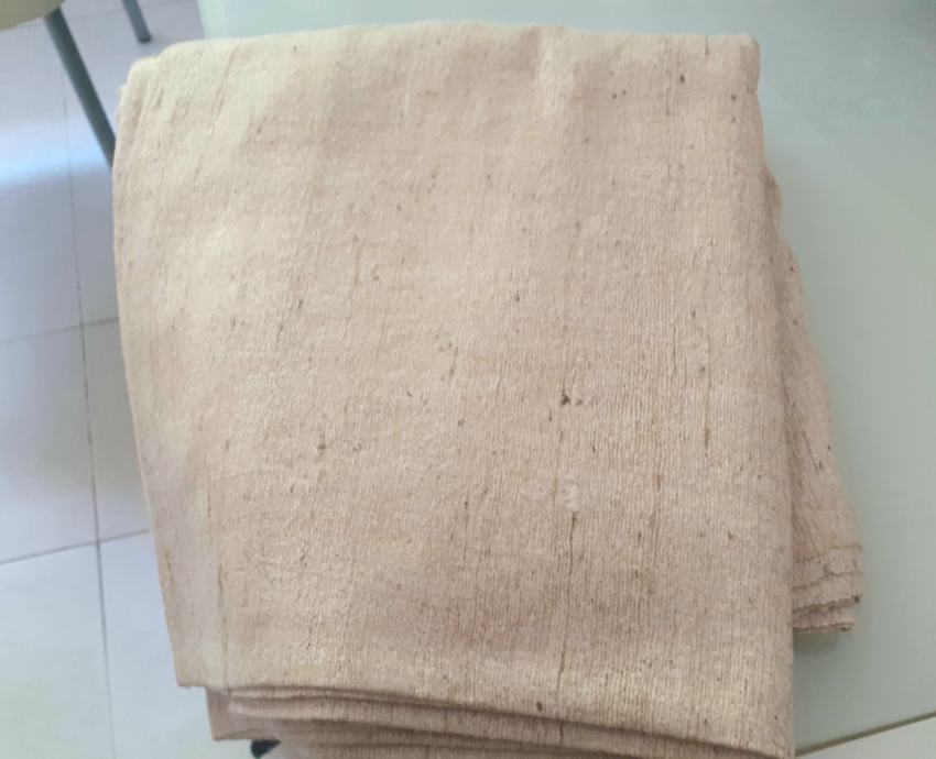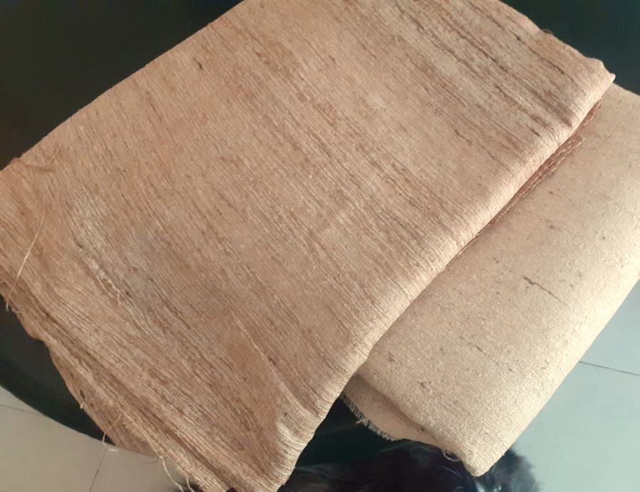 2 komada sirove svile. Svjetliji bež komad 460 x 125 a tamniji 330 x 125.