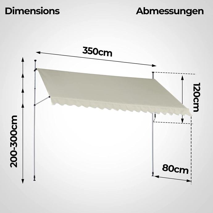 Tende za balkone, terase, verande... pružaju pouzdanu zaštitu od sunca i idealne su za korištenje gdje god vam nedostaje hlada, a posebno na balkonima. Tenda je izrađena od visokokvalitetnog, impregniranog poliesterskog materijala i aluminijske konstrukcije. Podesivi nosači omogućuju jednostavno postavljanje bez upotrebe vijaka, na visinu od 2 do 3 m, a praktična ručka olakšava otvaranje i zatvaranje.