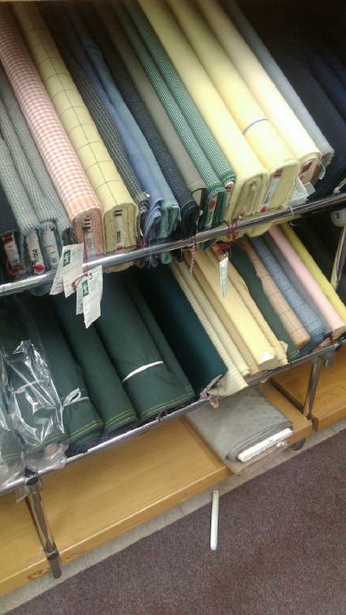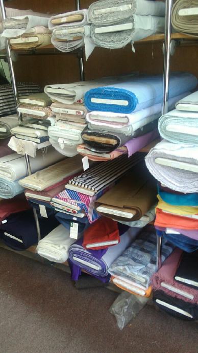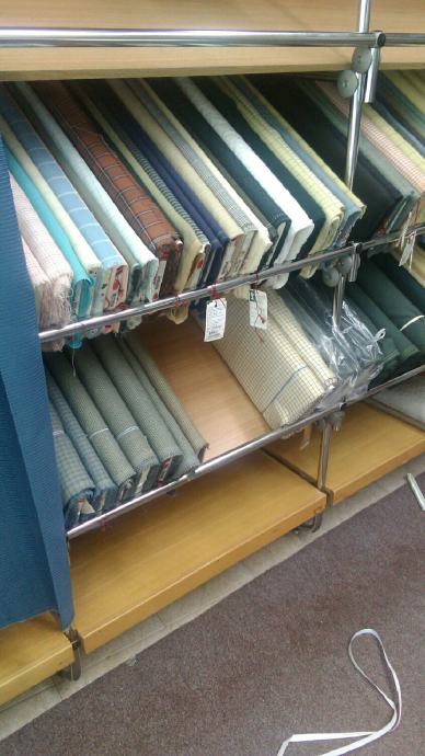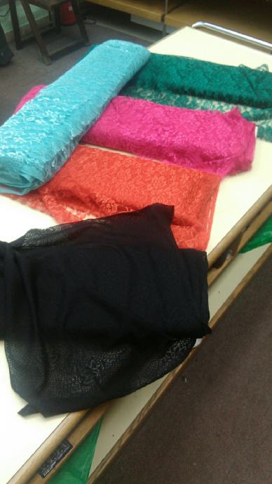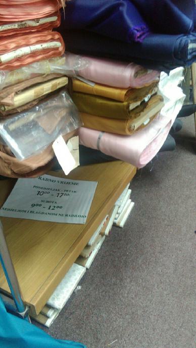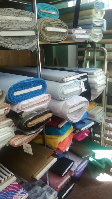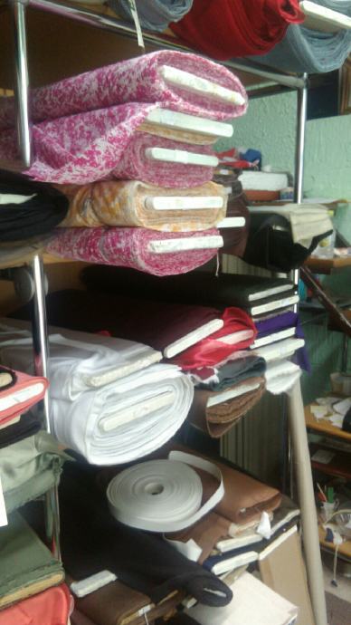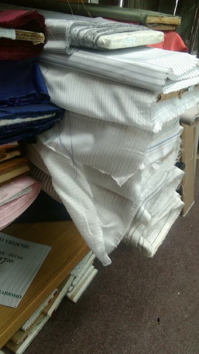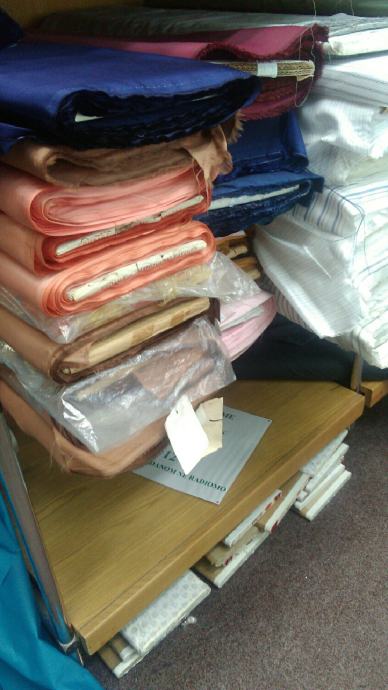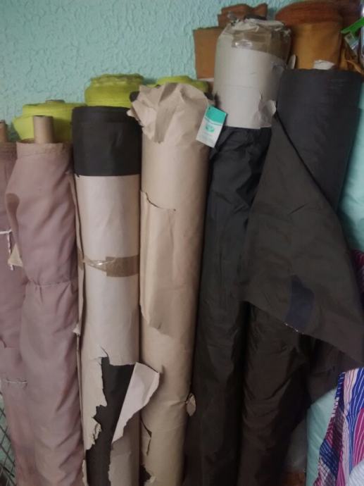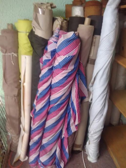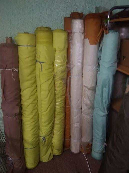 Veće kolićine poliamidnih(poliesteri) tkanina raznih debljina (suncobrani, štep podstava , vojna podstava) i boja. Neki materijali mogu biti i modni i dekorativni. 2€ met., dužni.