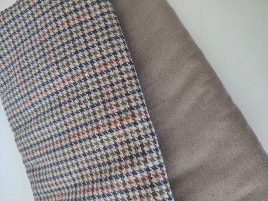 Dvije vunica tkanine, jedna jednobojna smeđa, a druga karo smeđa