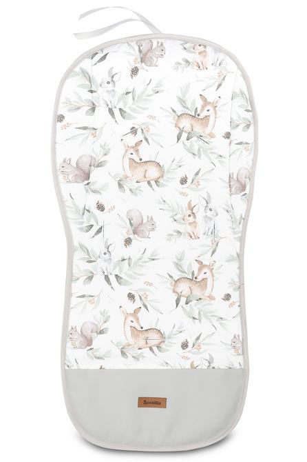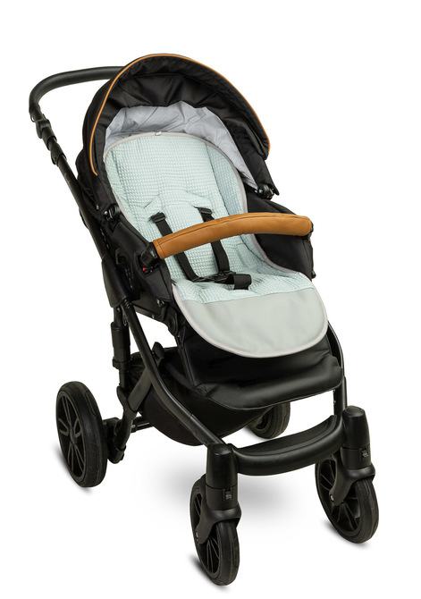Zahvaljujući univerzalnoj podlozi za kolica s vodootpornim osloncem za noge svatko može promijeniti izgled kolica. Dvostrana podstava ima s jedne strane glatki pamuk s modernim uzorkom, dok je s druge strane jednobojni pamuk waffle strukture. S obje strane, na dnu, nalazi se šarena imitacija kože koja se lako održava čistom. Podstava pomaže u održavanju čistoće unutrašnjosti kolica i poboljšava udobnost putovanja. Dodatno ima rupe za sigurnosne pojaseve i vrpcu na koju se može pričvrstiti odgovarajući jastuk.
