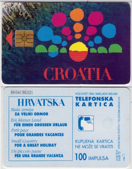 058 HRVATSKA CROATIA TEL.KARTICA TURIZAM 100 II IZDANJE 1994 ČIP 2T