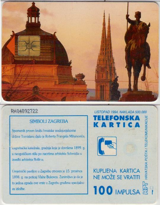 063 HRVATSKA CROATIA TEL.KARTICA SIMBOLI ZG II IZDANJE 1994 ČIP 2VT