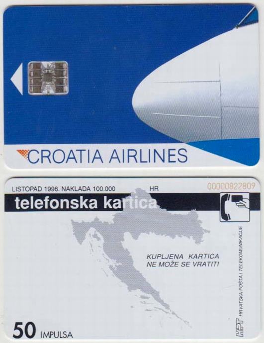 104 HRVATSKA CROATIA TEL.KARTICA CROATIA AIRLINES 1996