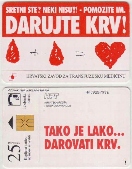 131 HRVATSKA CROATIA TEL.KARTICA DARUJTE KRV 1997 ČIP 1T