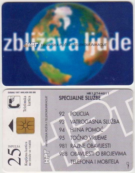 142 HRVATSKA CROATIA TEL.KARTICA ZBLIŽAVA LJUDE 1997 ČIP 2T