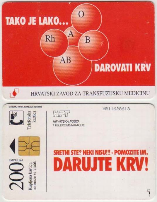 145 HRVATSKA CROATIA TEL.KARTICA TAKO JE LAKO DAROVATI KRV 1997 ČIP 1T