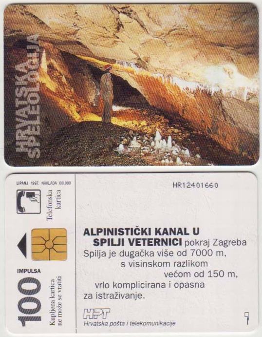 158 HRVATSKA CROATIA TEL.KARTICA AL.KANAL SPILJA VETERNICA 1997 ČIP 1T