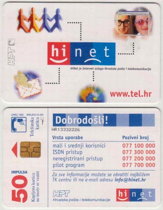 179 HRVATSKA CROATIA TEL.KARTICA HINET 1998