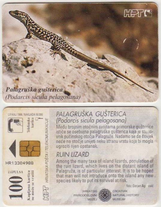182 HRVATSKA CROATIA TEL.KARTICA PALAGRUŠKA GUŠTERICA 1998