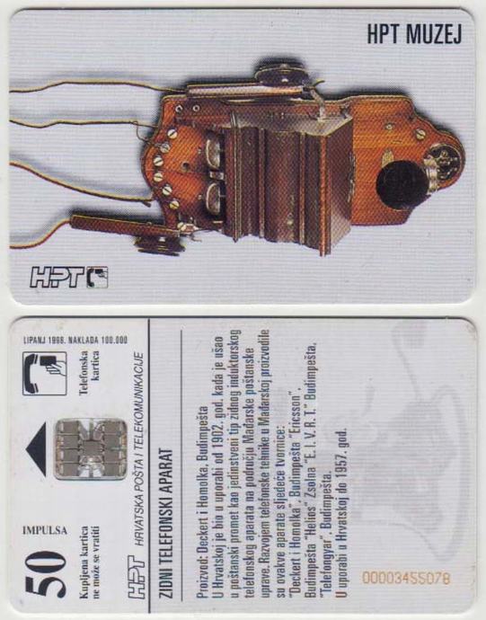 185 HRVATSKA CROATIA TEL.KARTICA ZIDNI TELEFONSKI APARAT 1998