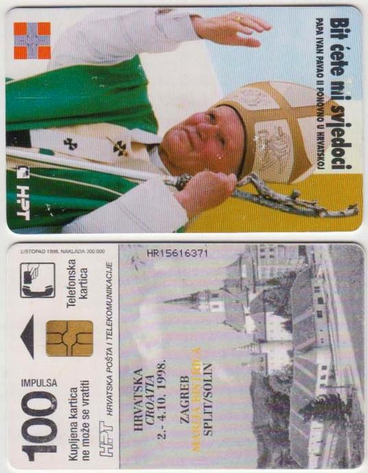 220 HRVATSKA CROATIA TEL.KARTICA PAPA ( M. BISTRICA) II IZDANJE 1998