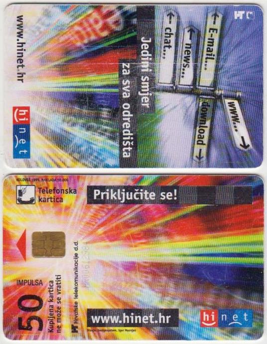 288 HRVATSKA CROATIA TEL.KARTICA HINET (PUTOKAZI) 1999
