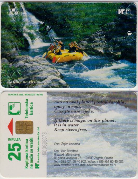 295 HRVATSKA CROATIA TEL.KARTICA RAFTING NA CETINI 2000