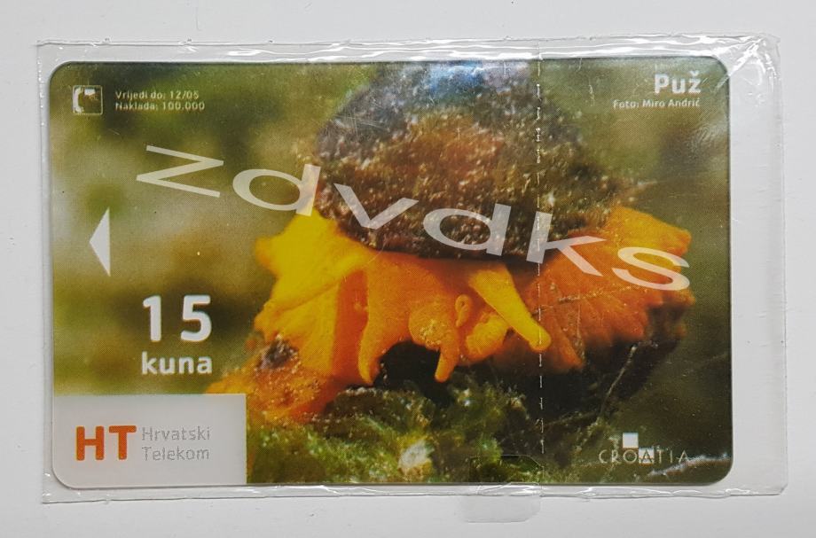 HRVATSKA TELEFONSKA KARTICA, PODMORJE, PUŽ, 2003, NEKORIŠTENA