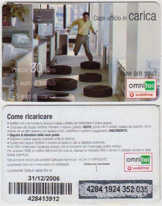 ITALIJA ITALY 03 OMNITEL VODAFONE BON ZA MOBITEL 30 E 31/12/ 2006