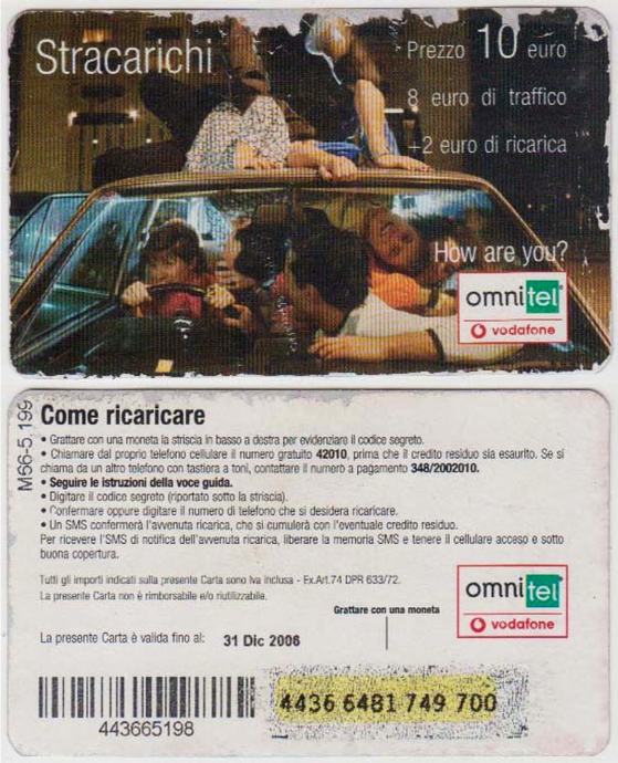ITALIJA ITALY 04 OMNITEL VODAFONE BON ZA MOBITEL 10 E 31 Dic 2006