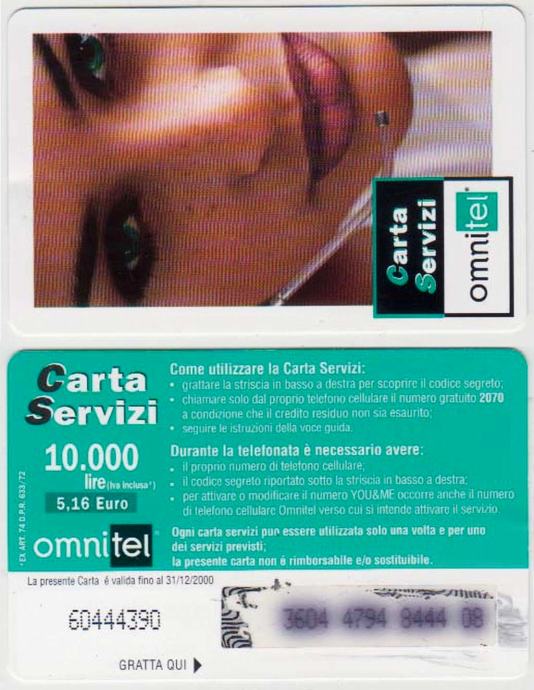 ITALIJA ITALY 04 SERVIZI OMNITEL BON ZA MOBITEL 10 000 L 31/12/2000