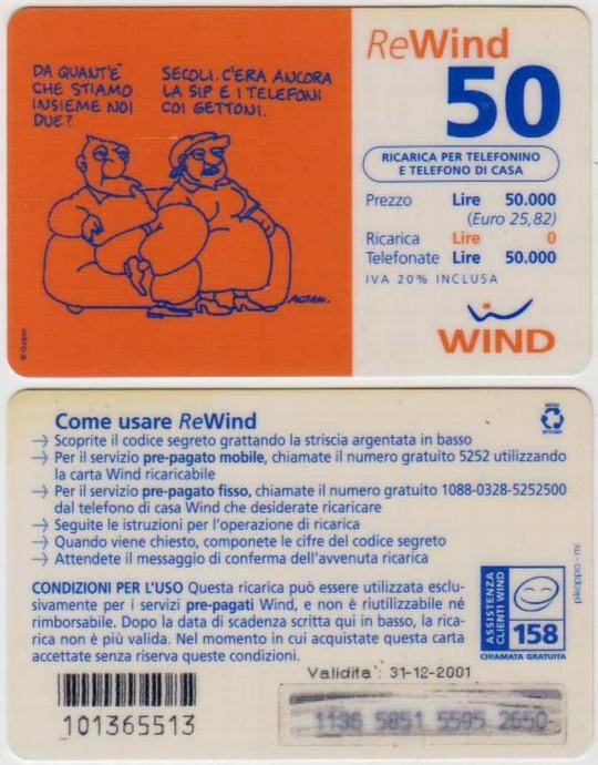 ITALIJA ITALY 057 RE WIND ALTAN BON ZA MOBITEL L 50 000 31-12-2001